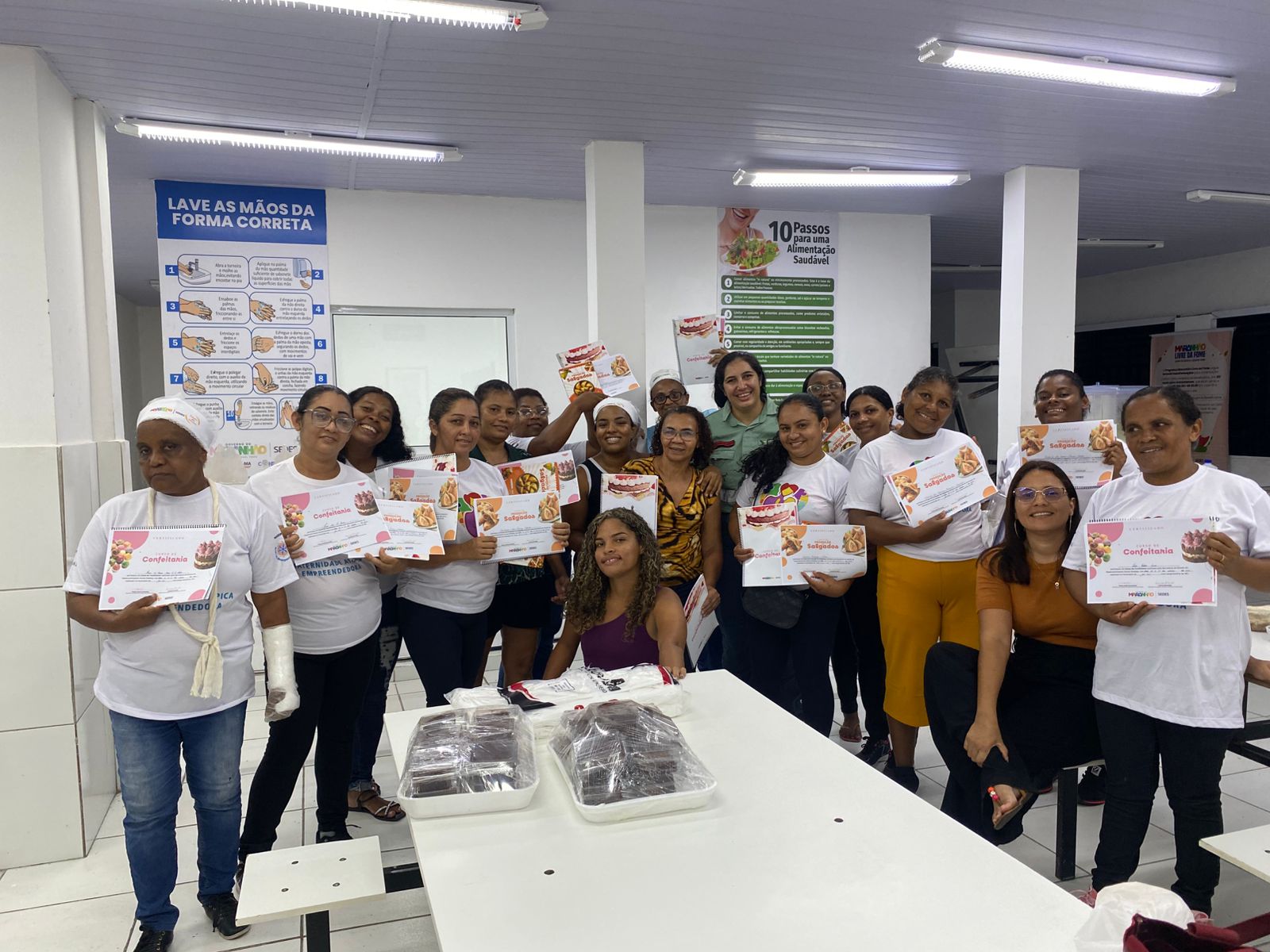 A formação ocorreu no Restaurante Popular da Vila Embratel e contou com oficinas práticas de salgados e confeitaria, onde as participantes puderam aprimorar técnicas de produção, ampliar seus conhecimentos e fortalecer suas habilidades empreendedoras.